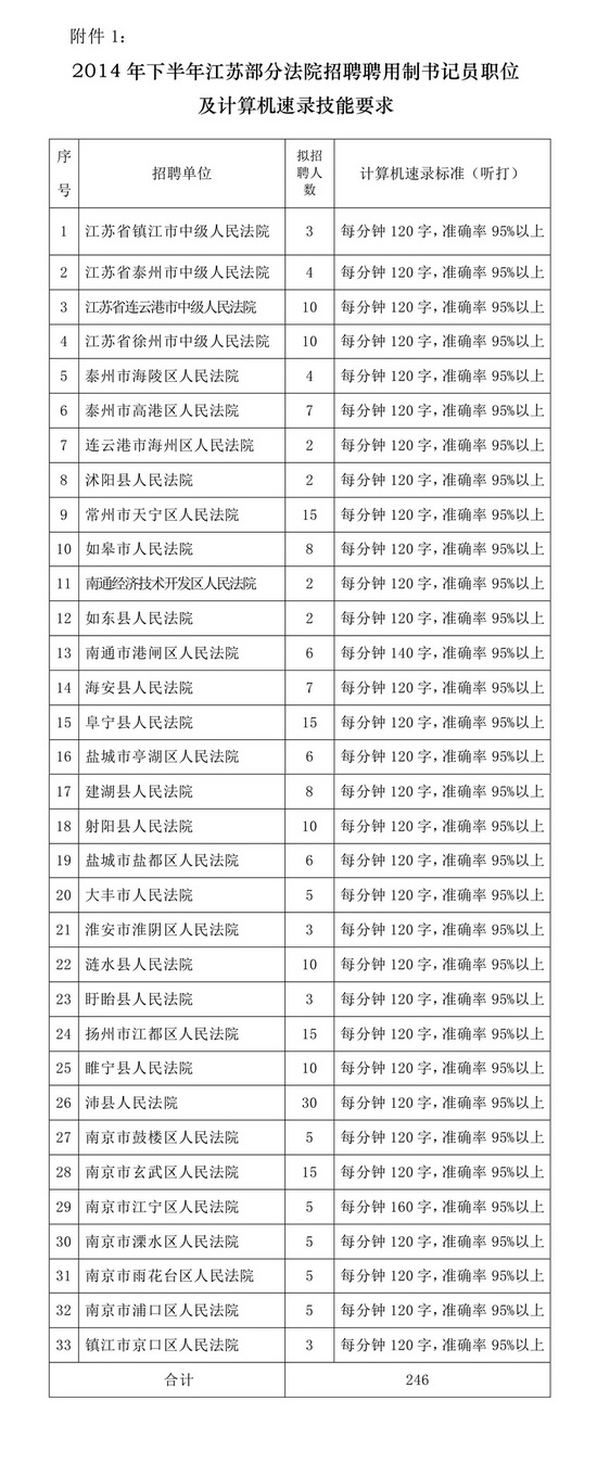 2014年下半年泰州市法院系統(tǒng)招聘聘用制書記員職位及計算機速錄技能要求