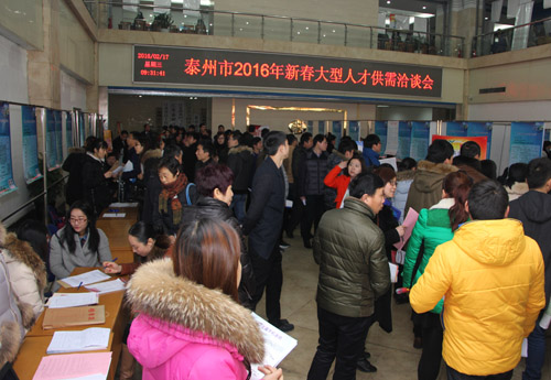 2月17日,泰州市人才市場(chǎng)舉辦了“泰州市2016年新春大型人才供需洽談會(huì)”,吸引了揚(yáng)子江藥業(yè)集團(tuán)、中丹集團(tuán)、可勝科技、樂(lè)葉光伏、罡陽(yáng)股份等180家多知名企業(yè)進(jìn)場(chǎng)招聘,涉及機(jī)械、電子、生物、醫(yī)藥、化工、金融、服務(wù)等各個(gè)產(chǎn)業(yè),需求各類(lèi)人才6032人,現(xiàn)場(chǎng)接受各類(lèi)求職簡(jiǎn)歷4217份,5300余人進(jìn)場(chǎng)求職,現(xiàn)場(chǎng)達(dá)成就業(yè)意向1265人。