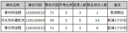 2017年泰州公務(wù)員考試核減、取消職位計(jì)劃公告